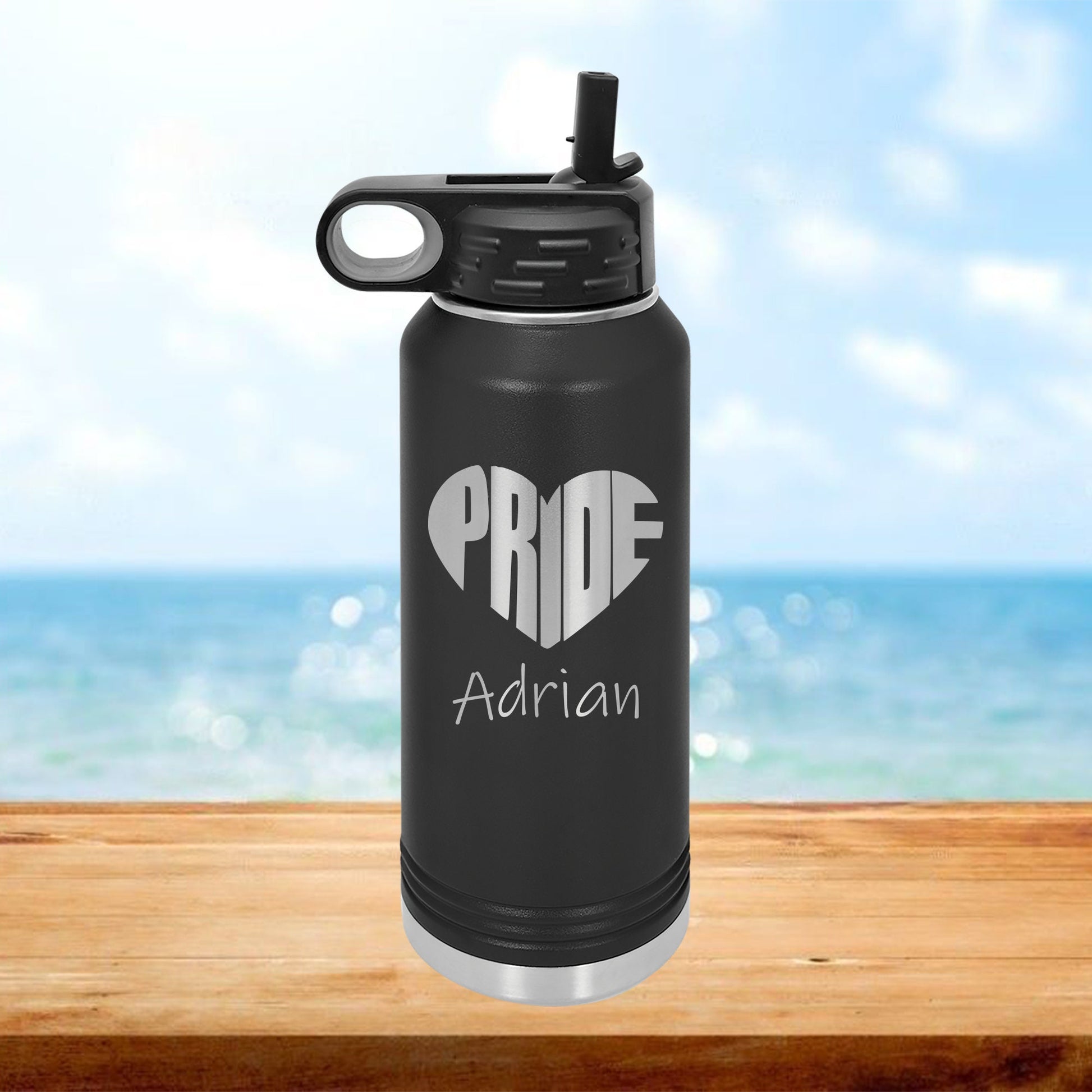 Personalized Pride Heart Water Bottle - Laser Engraved