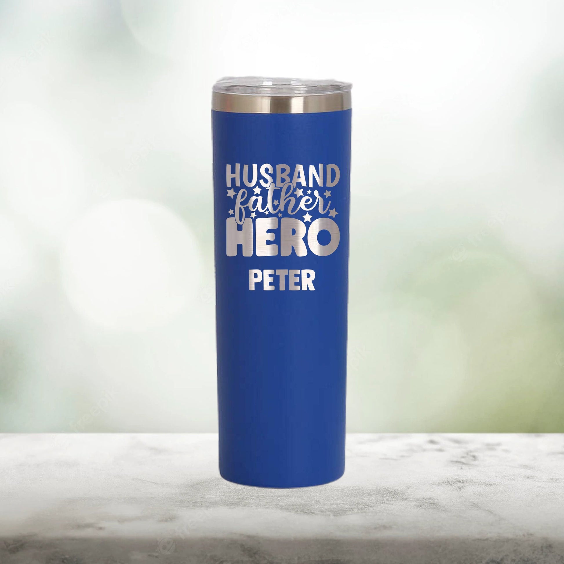 Personalized Husband, Father, Hero Dad Skinny Tumbler - Laser Engraved
