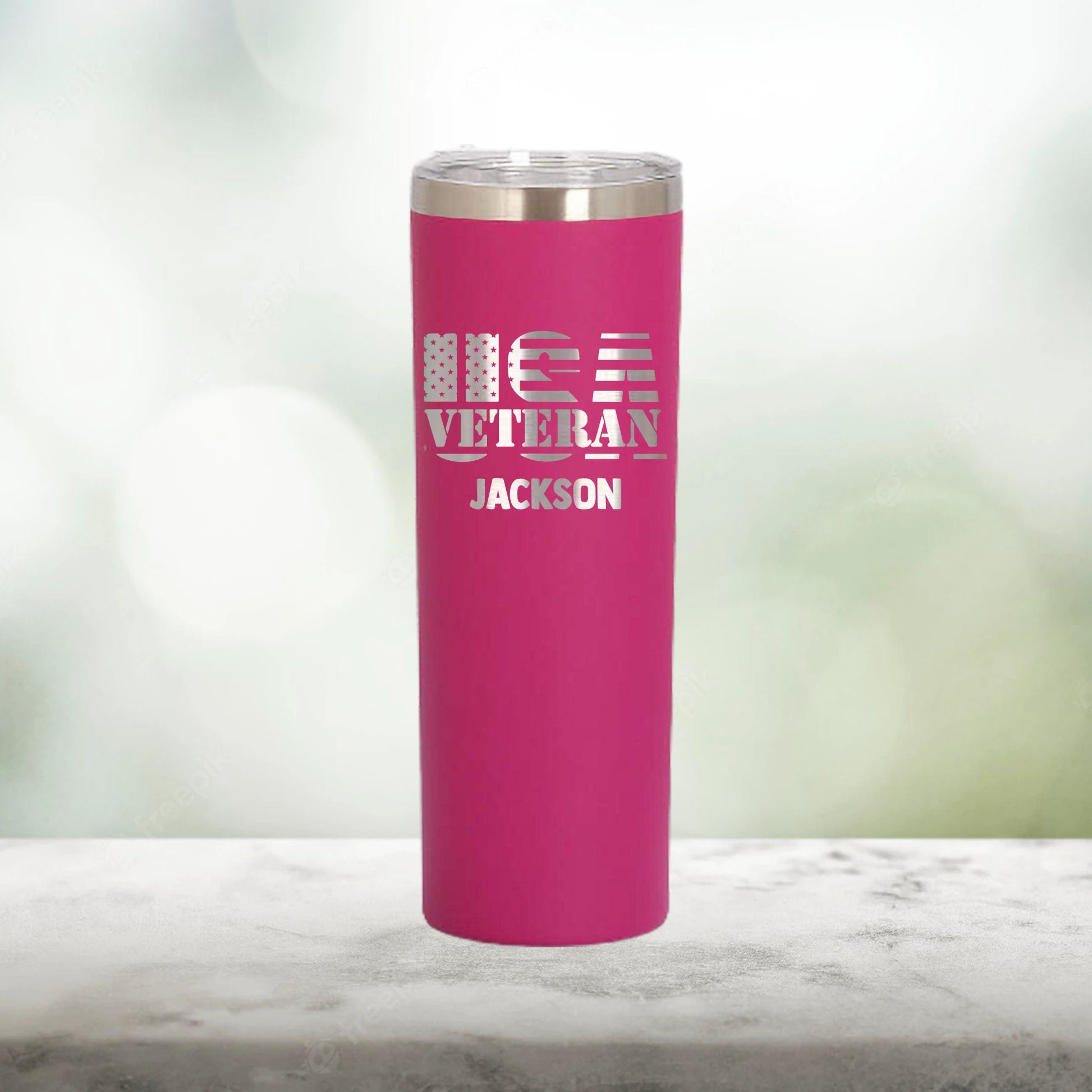 Personalized USA Veteran Skinny Tumbler - Laser Engraved