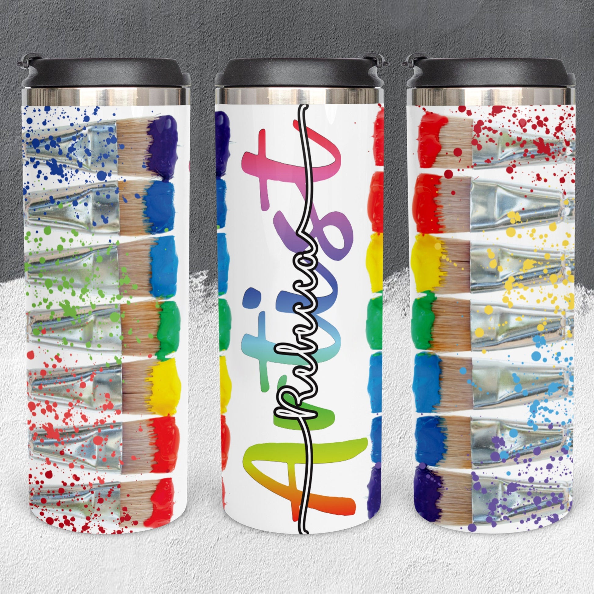 Personalized Artist Rainbow Paint Brush Tumbler - Sublimated