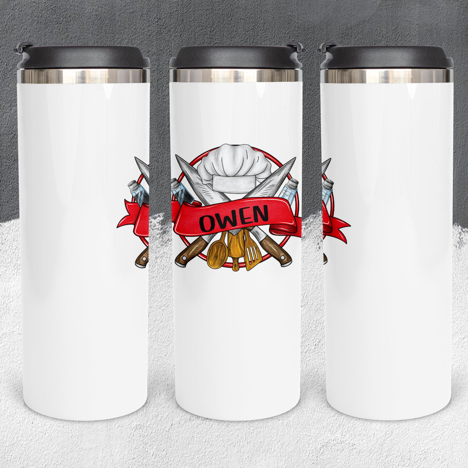 Personalized Chef Hat and Utensils Monogram Tumbler - Sublimated