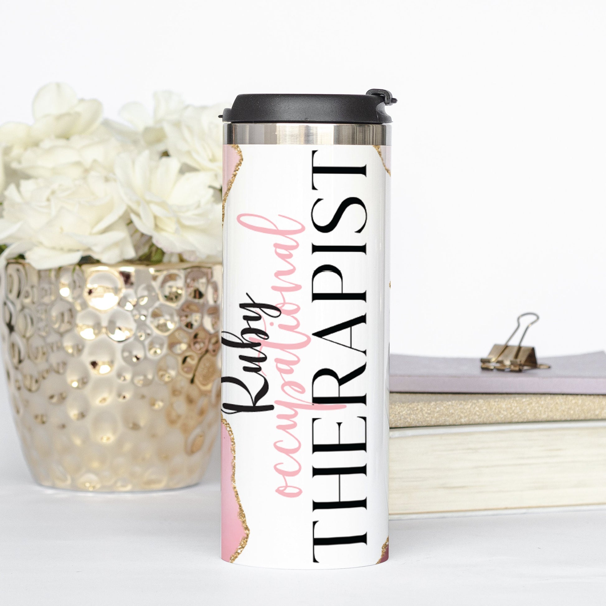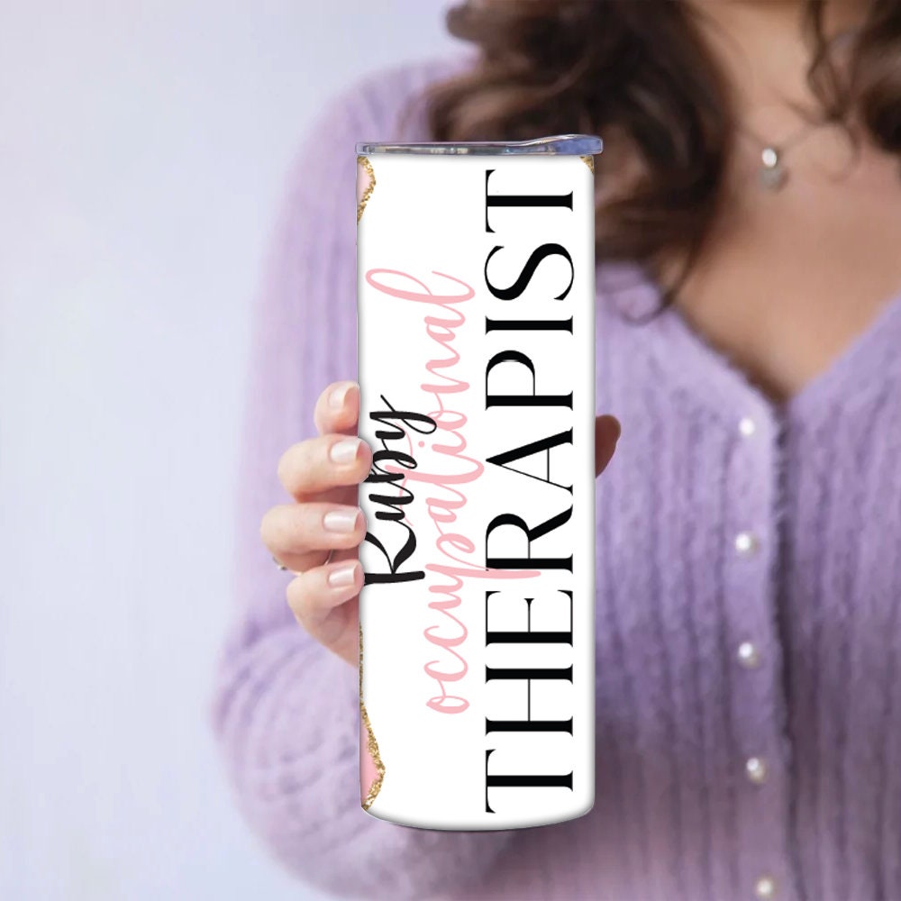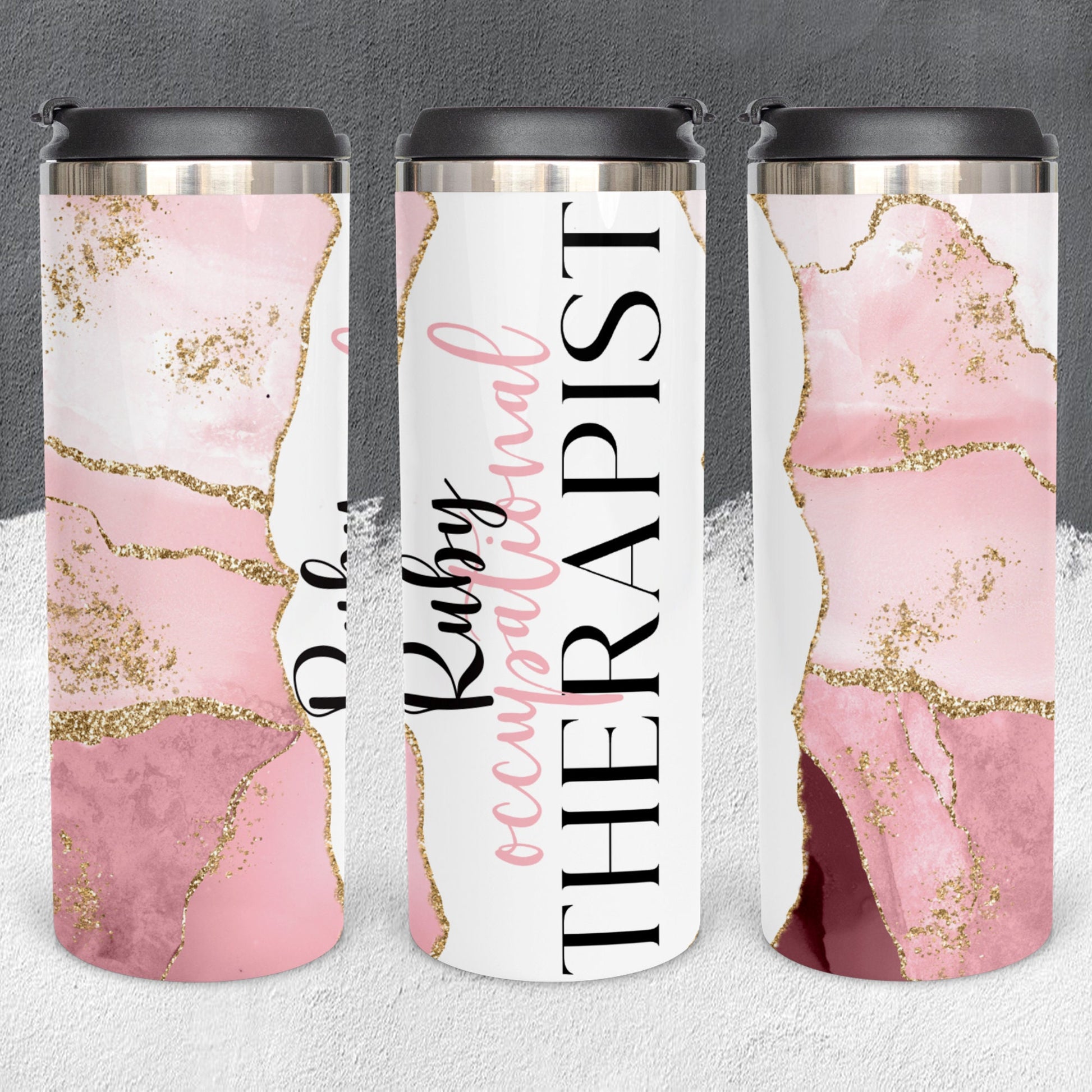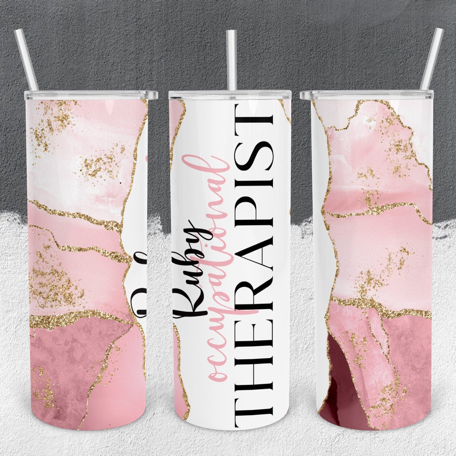 Personalized Occupational Therapist Pink Marble Tumbler - Sublimated