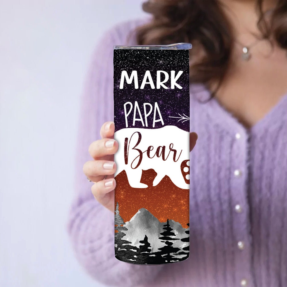 Personalized Papa Bear Starry Night Tumbler - Sublimated