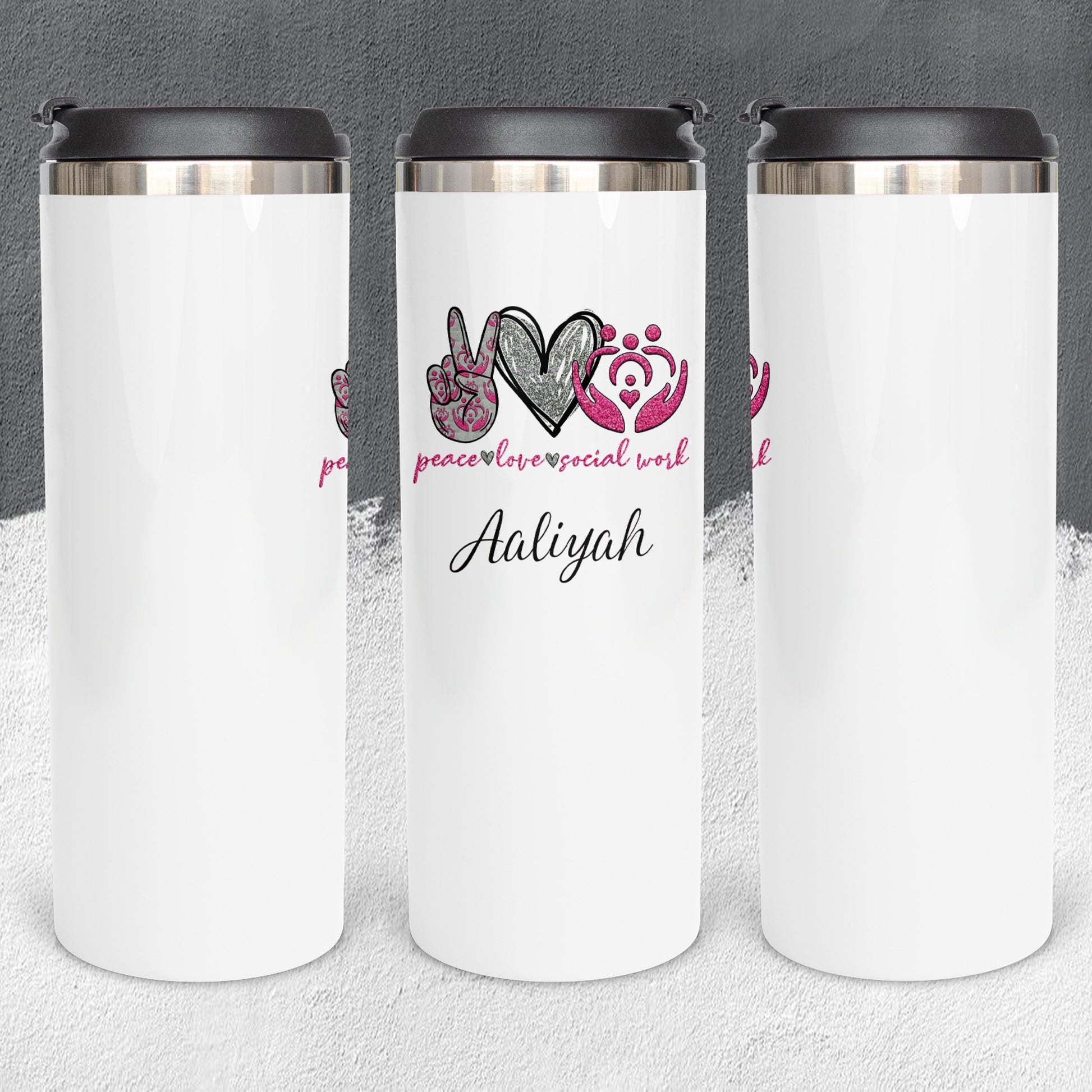Personalized Peace Love Social Work Tumbler - Sublimated