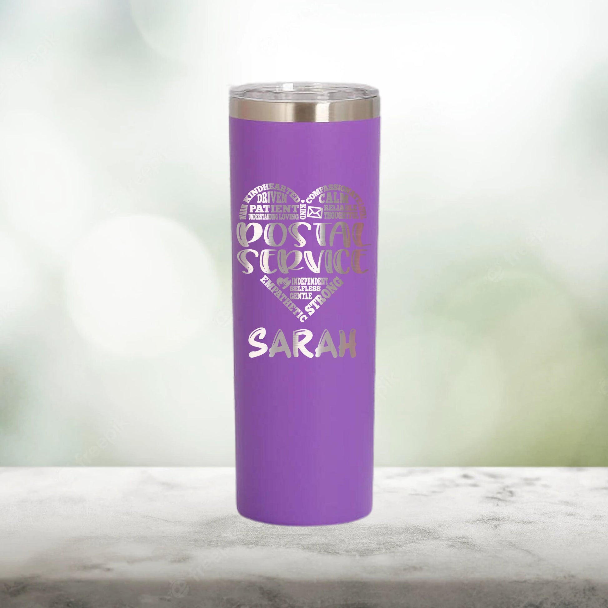 Personalized Post Office Characteristics Heart Skinny Tumbler - Laser Engraved