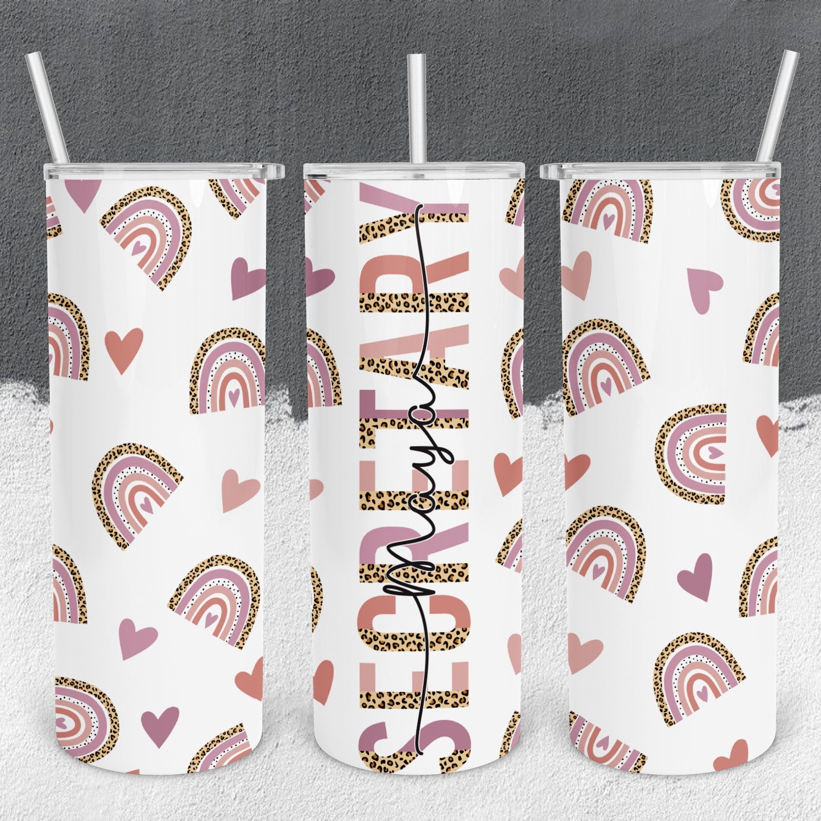 Personalized Secretary Rainbows Cheetah Print Tumbler - Sublimated
