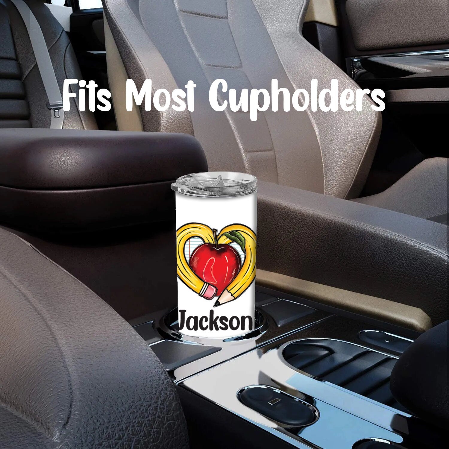 Personalized Teacher Apple and Pencil Heart Shape Tumbler - Sublimated