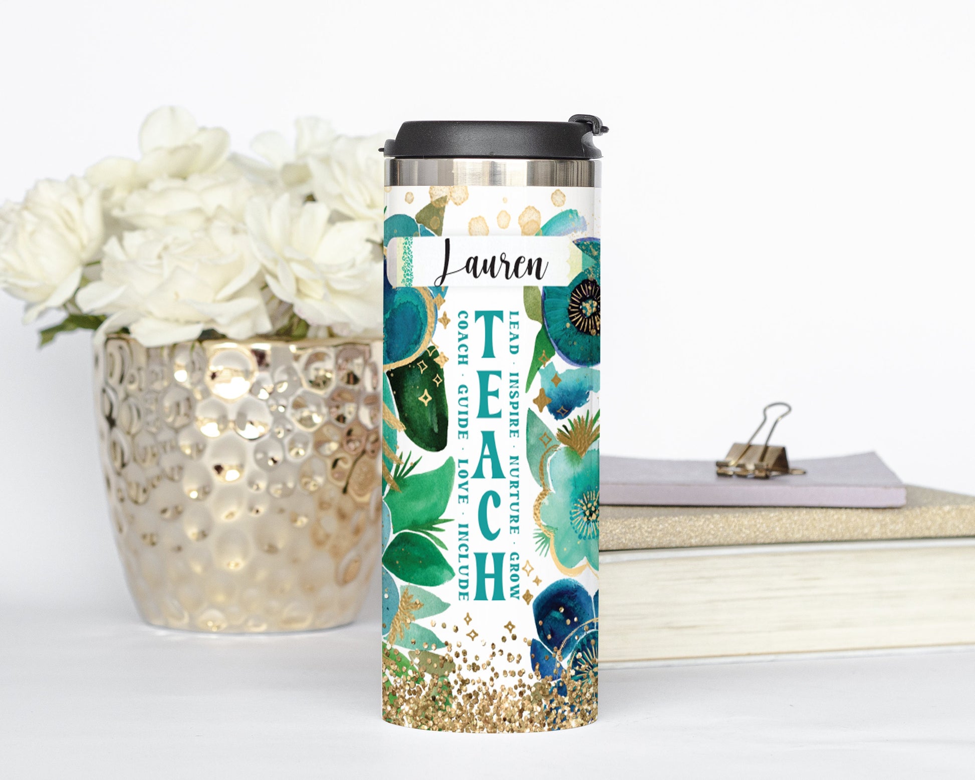 Personalized Teacher Foliage Tumbler - Sublimated