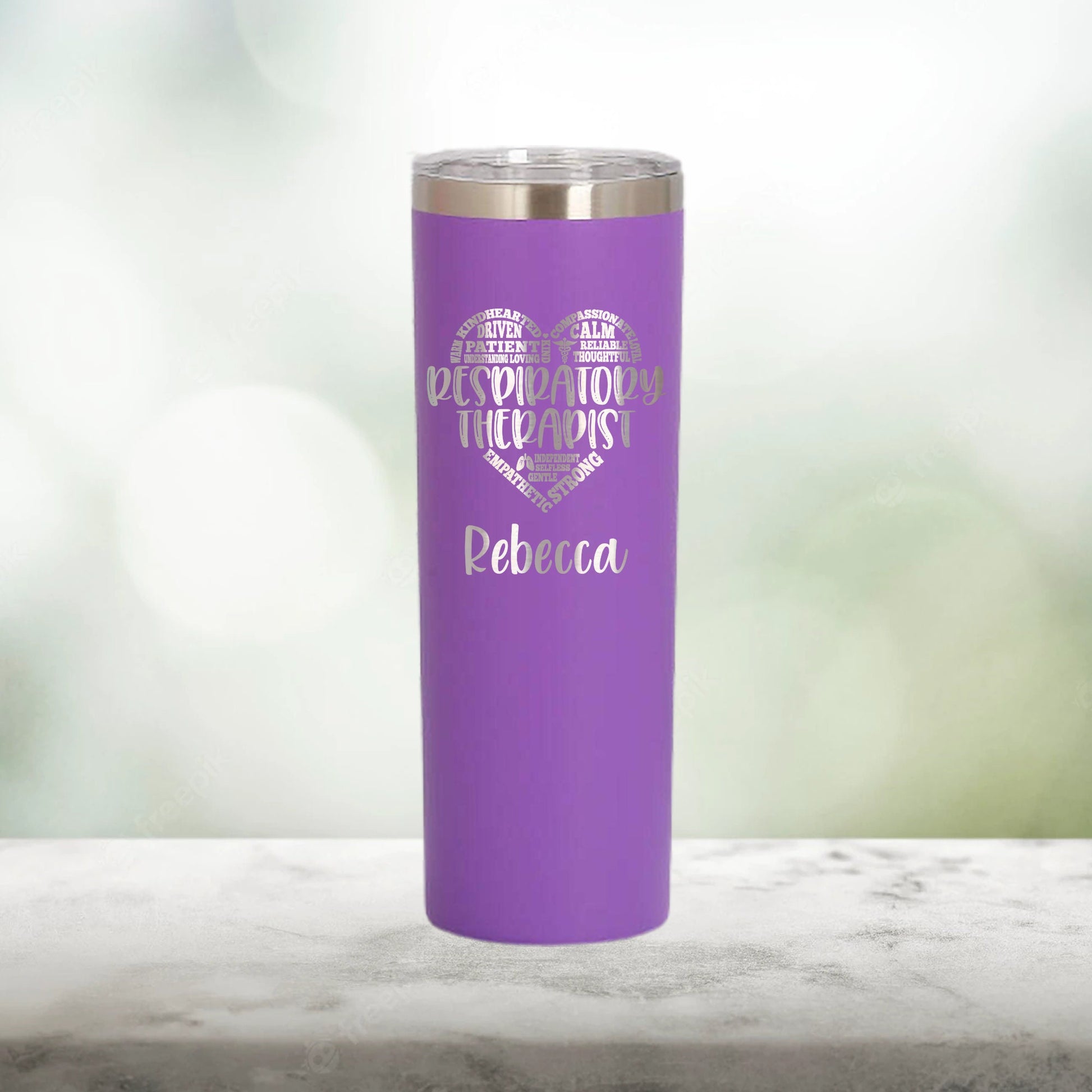 Personalized Respiratory Therapist Heart Skinny Tumbler - Laser Engraved