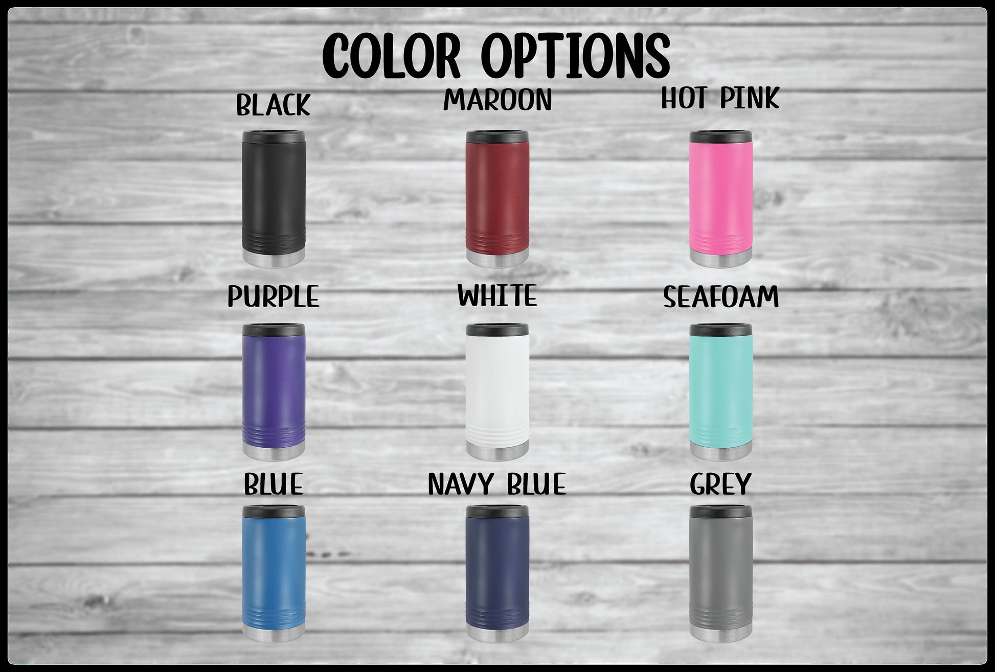 Personalized insulated skinny can coolers make an outstanding and extremely durable gift. These tough tumblers have a double-wall vacuum that keeps hot beverages hot for up to 4 hours and cold drinks cold for up to 15 hours. Another benefit of this double-wall vacuum is no pesky water rings on your coffee tables.