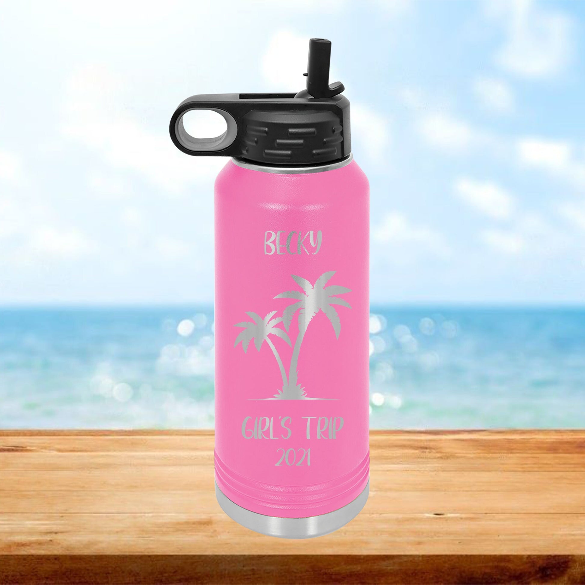 Personalized Tropical Palm Tree Vacation Water Bottle - Laser Engraved